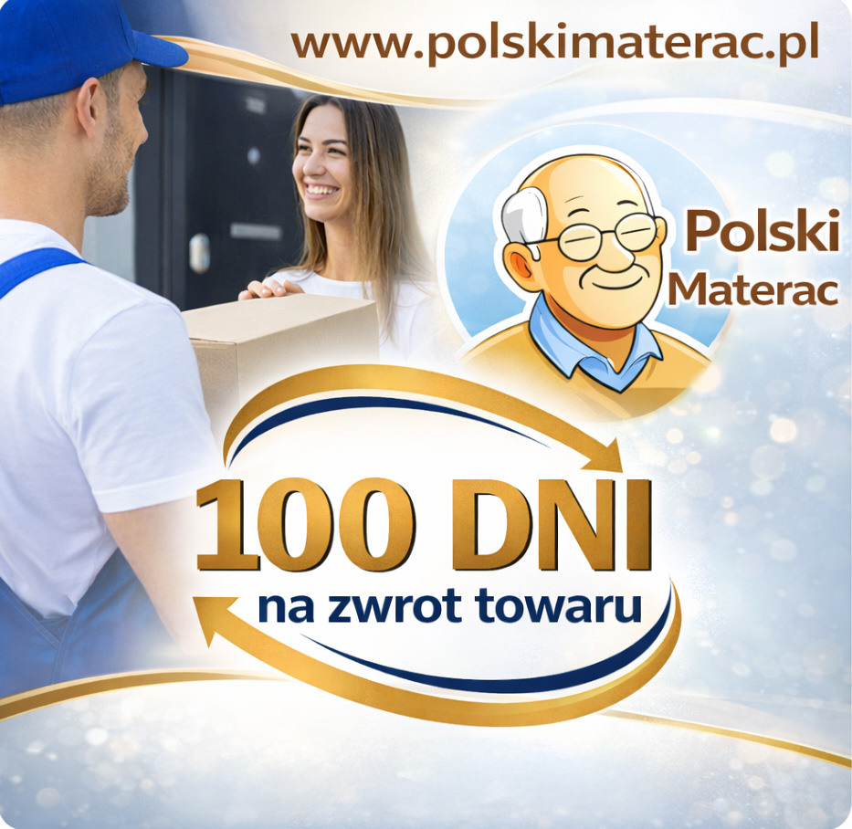 Zakupy w PolskiMaterac.pl są przejrzyste i bezpieczne – szanujemy prawa konsumenta, zasady zwrotów i reklamacji. Dodatkowo wdrożyliśmy wewnętrzny Program Ochrony Klienta na wypadek sytuacji problemowych (np. uszkodzenia w transporcie czy kłopotów z doręczeniem).