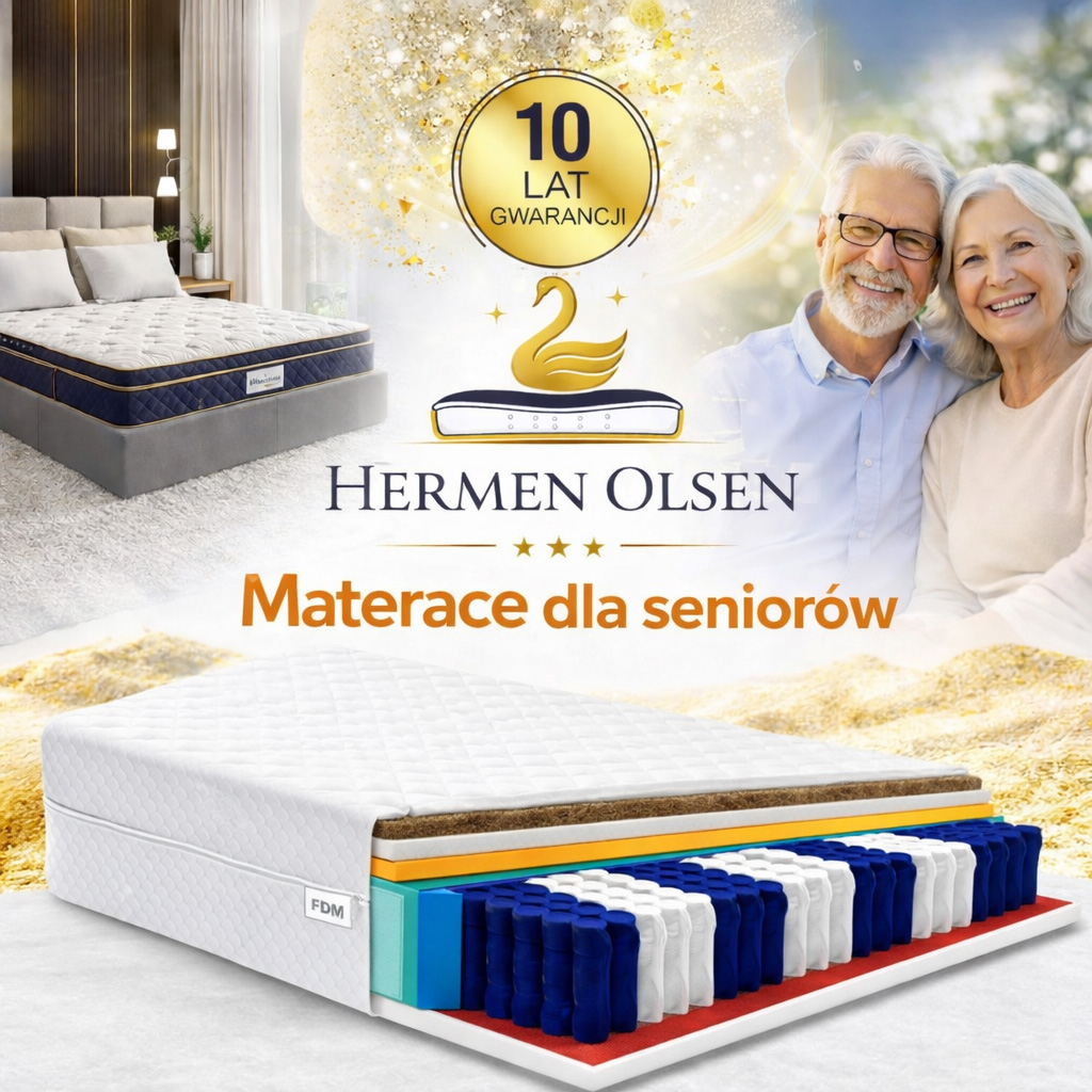 Materac 140x200 Dla Seniora Hermen Olsen Senior Pro 25 cm Gruby Kieszeniowy Dwustronny H3/H4 Premium