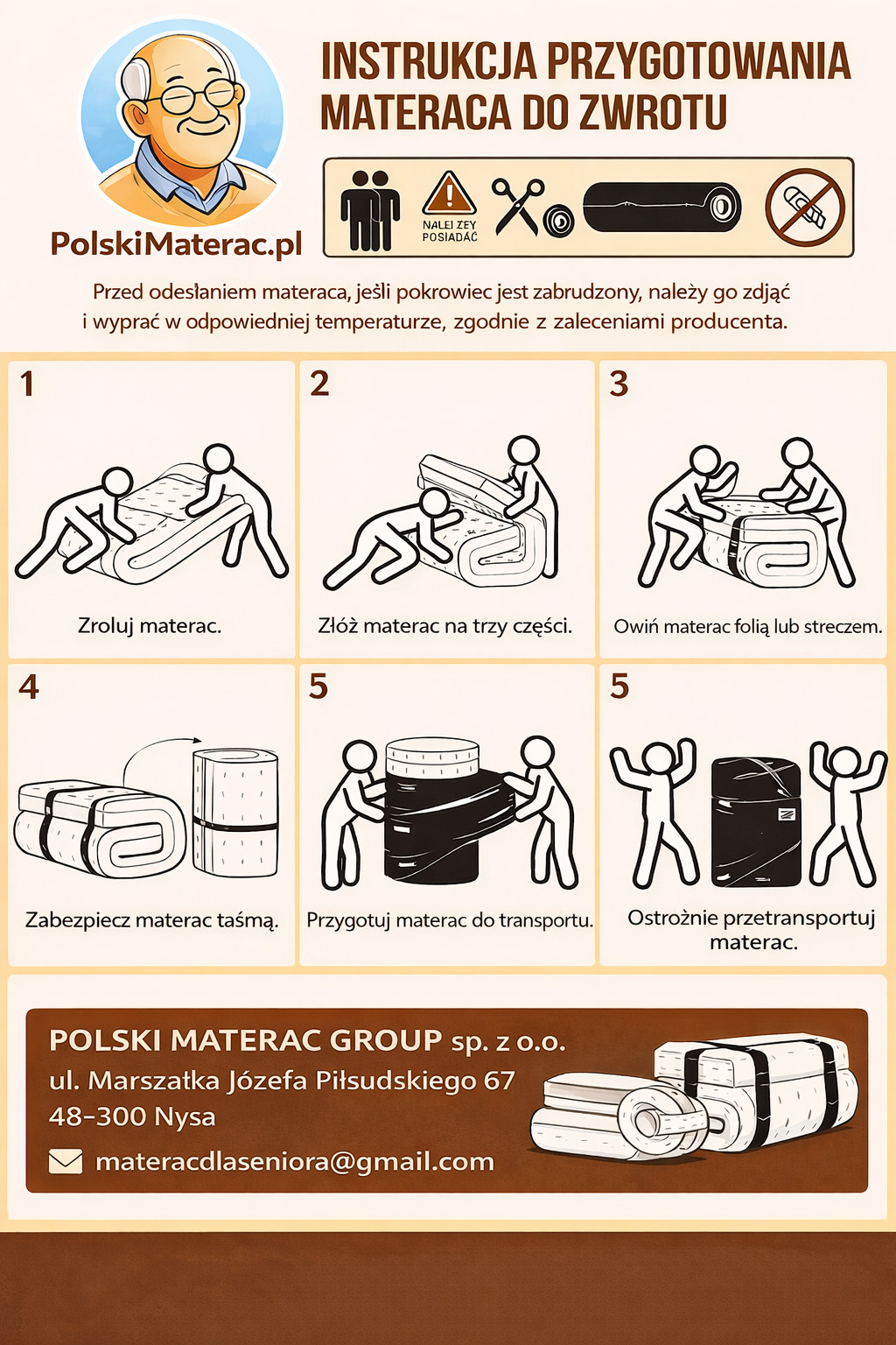 - Instrukcja jak poprawnie przygotować materac do zwrotu jest w punkcie 7