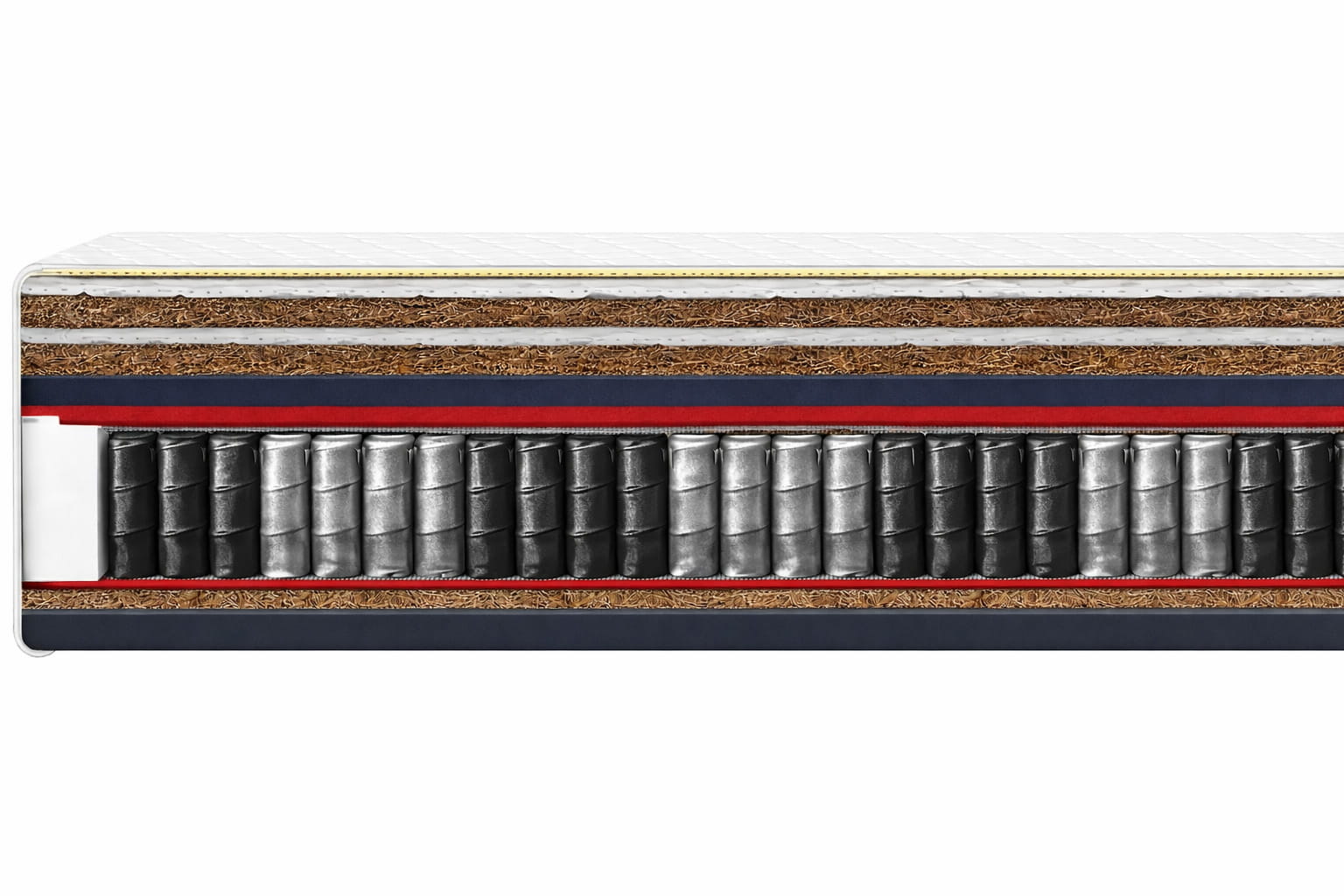 Naturalny wkład kokosowy wykonany z włókien pozyskiwanych ze skorup orzecha kokosu zapewnia stabilne i zdrowe podparcie dla ciała. Jest to materiał ekologiczny, trwały i odporny na odkształcenia, co przekłada się na długą żywotność materaca.