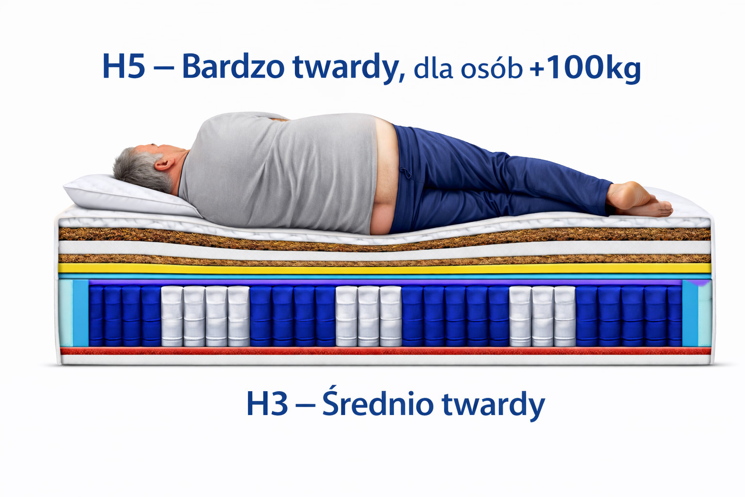 Materac posiada dwustronną konstrukcję H3 / H5: