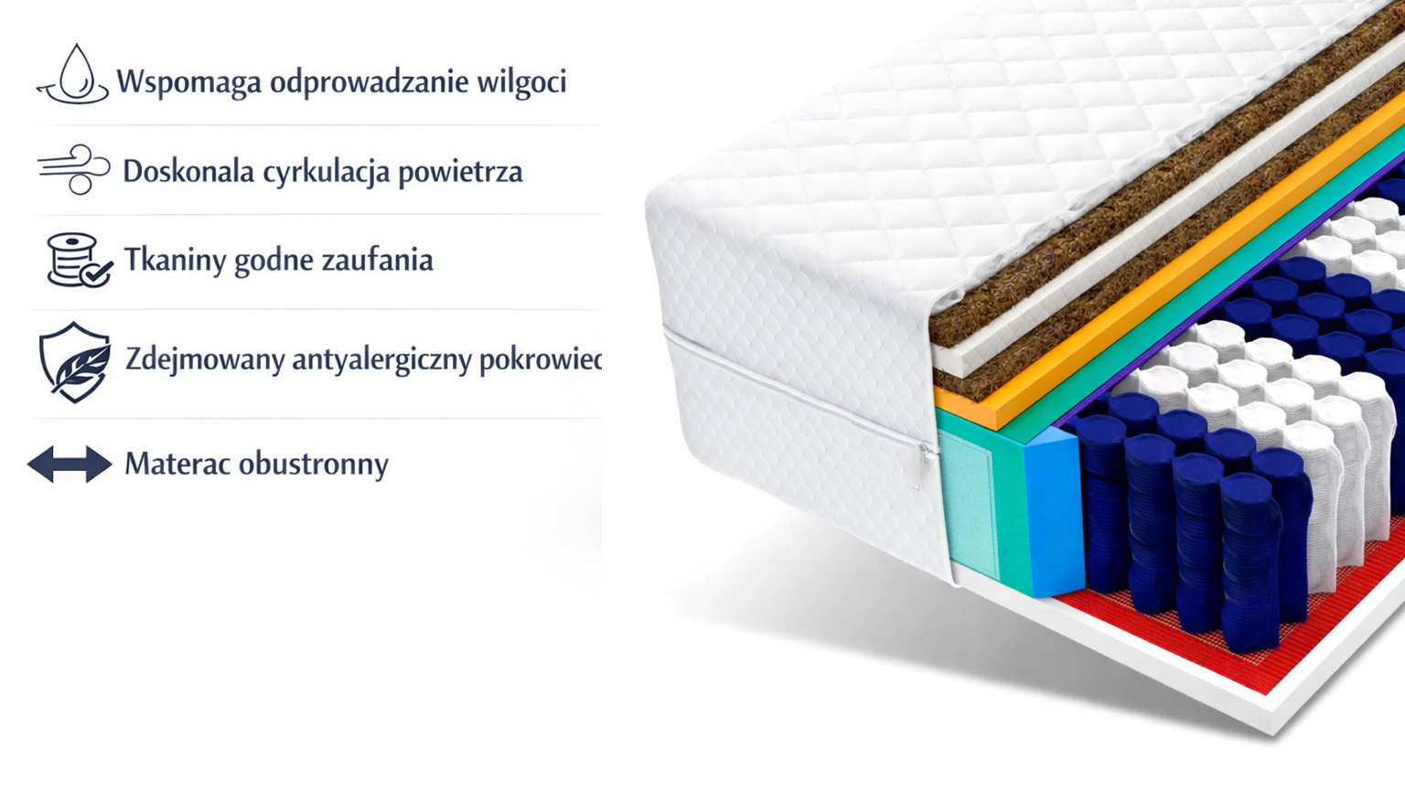 ✔️ Brak nieprzyjemnych zapachów – materac gotowy do użytkowania od razu po rozpakowaniu