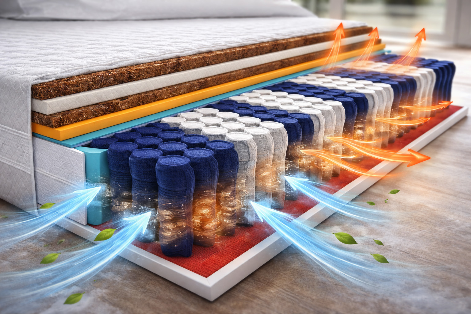 dzięki rdzeniowi z kieszeniowymi sprężynami i naturalnym materiałom, które pozwalają na cyrkulację powietrza wewnątrz materaca.